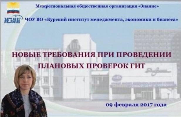 В Курском институте менеджмента, экономики и бизнеса 9 февраля 2017 года состоялся семинар «Новые требования при проведении плановых проверок ГИТ», на котором шел разговор о правильной подготовке предприятия и его документации к проверке Государственной инспекции труда.