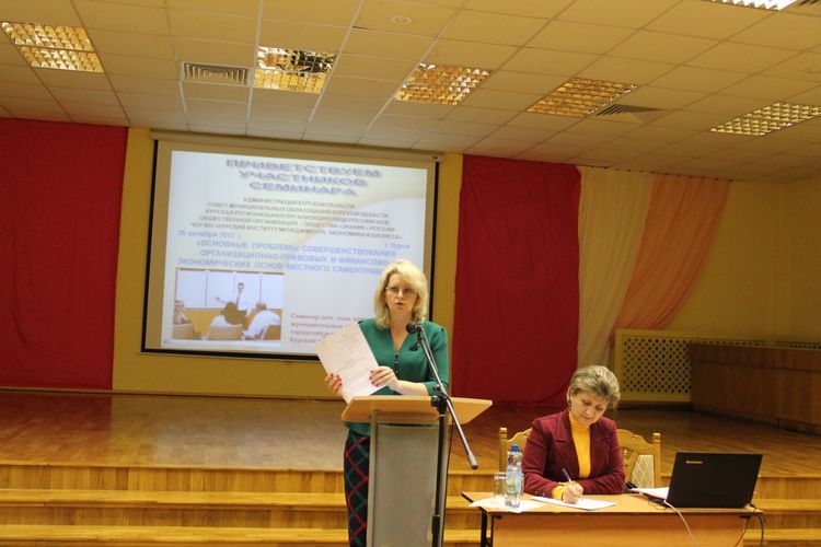 26 октября 2017 года в Курском институте менеджмента, экономики и бизнеса состоялся семинар «Основные проблемы совершенствования организационно-правовых основ местного самоуправления» для глав муниципальных образований городских и сельских поселений, проведенный в рамках программы повышения квалификации глав муниципальных образований и муниципальных служащих Курской области.