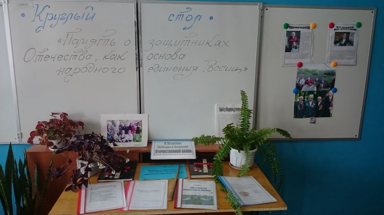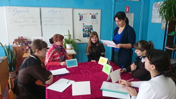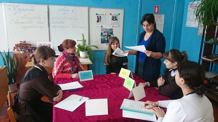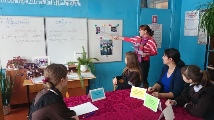 26 ноября в рамках реализации социально значимого проекта «Историческое наследие Победы – гордость семьи» в школе состоялся круглый стол на тему «Память о защитниках Отечества как основа народного единения России» (место встречи - Черемисиновская средняя общеобразовательная школа Черемисиновского района, ведущей круглого стола была заместитель директора по ВР Сорокина Н.В.).
