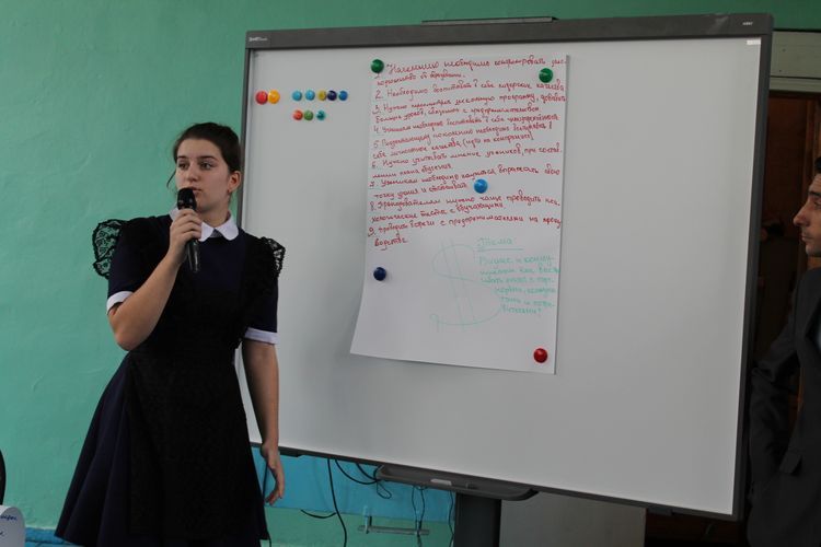 Разбившись на группы, в формате мозгового штурма школьники обсуждали вопросы, связанные с основами предпринимательства и экономики, предлагали свои идеи по развитию менеджерских способностей у учащихся, формированию предпринимательского мышления. В качестве модераторов с ребятами работали представители районной администрации, общественных организаций Касторенского района:
