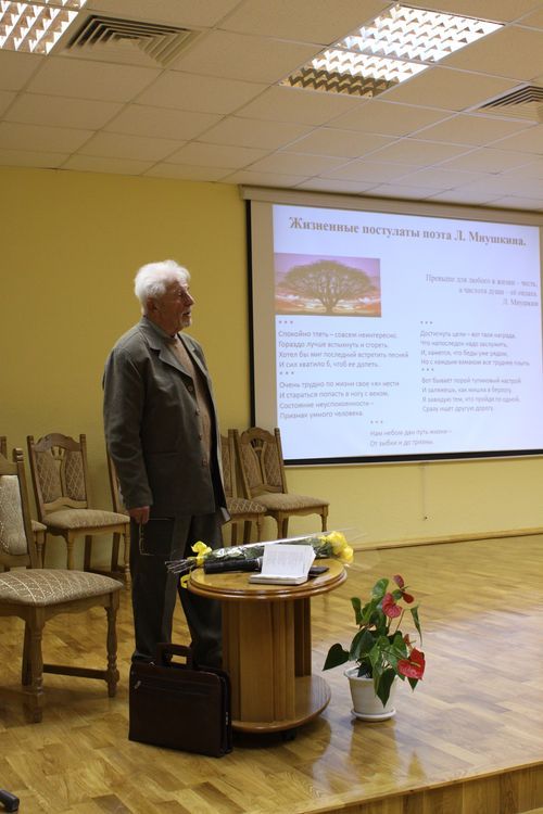9 октября в Доме знаний состоялся вечер, посвященный 50-летию творческой деятельности заслуженного работника культуры России, кавалера почетного знака г. Курска «За особые заслуги перед городом Курском, лауреата 3-х Всероссийских фестивалей самодеятельного творчества, автора 12 поэтических книг Льва Абрамовича Мнушкина.