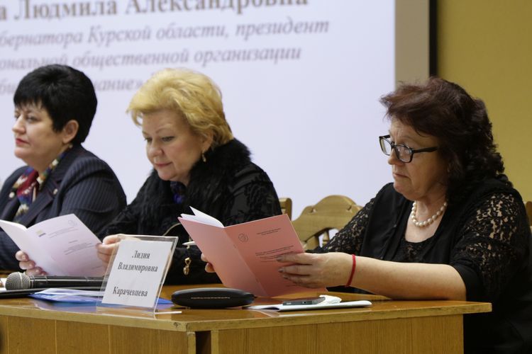 С приветствием к собравшимся обратилась Людмила Александровна Гребенькова – заместитель Губернатора Курской области, Президент Курской региональной общественной организации Общества «Знание» России, которая сказала, что Общество «Знание» является одной из самых востребованных общественных организаций. Она решает часть задач, связанных с формированием гражданского общества как в регионе, так и в стране. Президентский Совет организации совместно с Правлением Общества «Знание» во главе с Окороковой Г.П. стремятся к тому, чтобы объединить усилия ряда общественных организаций в вопросах информирования граждан, организации просветительской работы.