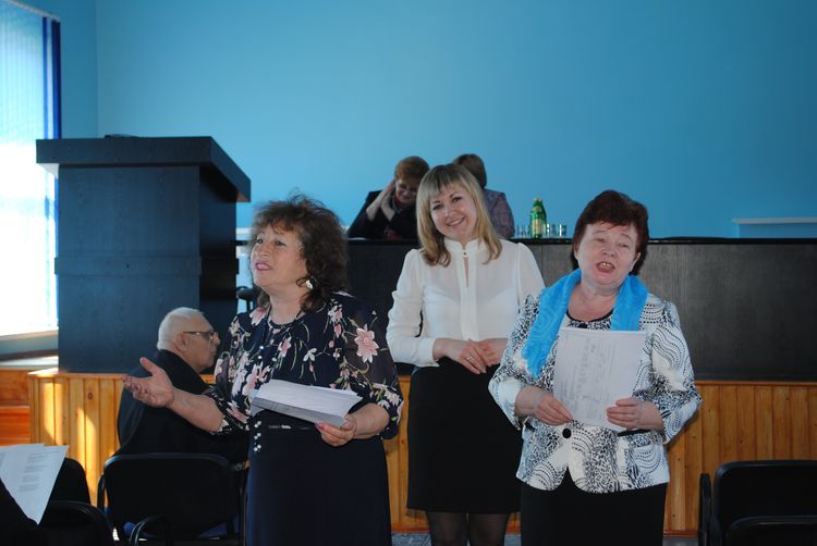 Директор Курского городского Дворца пионеров и школьников Девянина Л.Г. встретилась с работниками Администрации Хомутовского района, директорами и учителями школ, работниками библиотек и другими специалистами (97 человек). Воспитанники дворца пионеров и школьников выступили с патриотическими номерами, посвященными Дню Победы.