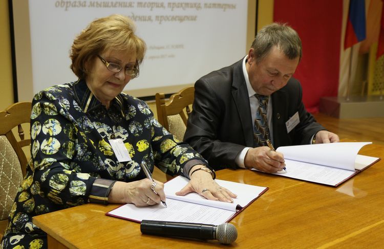 В торжественной обстановке пленарного заседания конференции состоялось подписание договора о сотрудничестве между Гомельской организацией Общества «Знание» Беларуси в лице Председателя правления Виктора Васильевича Кириенко и Курским отделением Российского общества «Знание» в лице Председателя Совета Галины Павловны Окороковой.