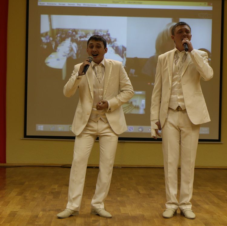 Творческий подарок от студентов Курского института менеджмента, экономики и бизнеса представили Дмитрий Пигорев и Ирина Савеленко, обладатели Гран-при областного фестиваля «Студенческая весна Соловьиного края – 2017» в номинации «бальные танцы». Прекрасные вокальные номера исполнили Роман Токарев и Ренат Дюсембаев, сотрудники Центра культуры и досуга г.Рыльска.